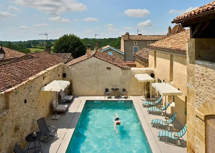 Hotel Le Chevalier Bleu Monpazier est située à environ 4 km de l'église Saint-Cernin de Saint-Cernin et à environ 25 minutes de marche de l'église Saint-Loup de Marsalès. Bénéficiant d'un emplacement près de la Place des Cornières, l'hotel comprend 14 chambres ainsi qu'un restaurant.
